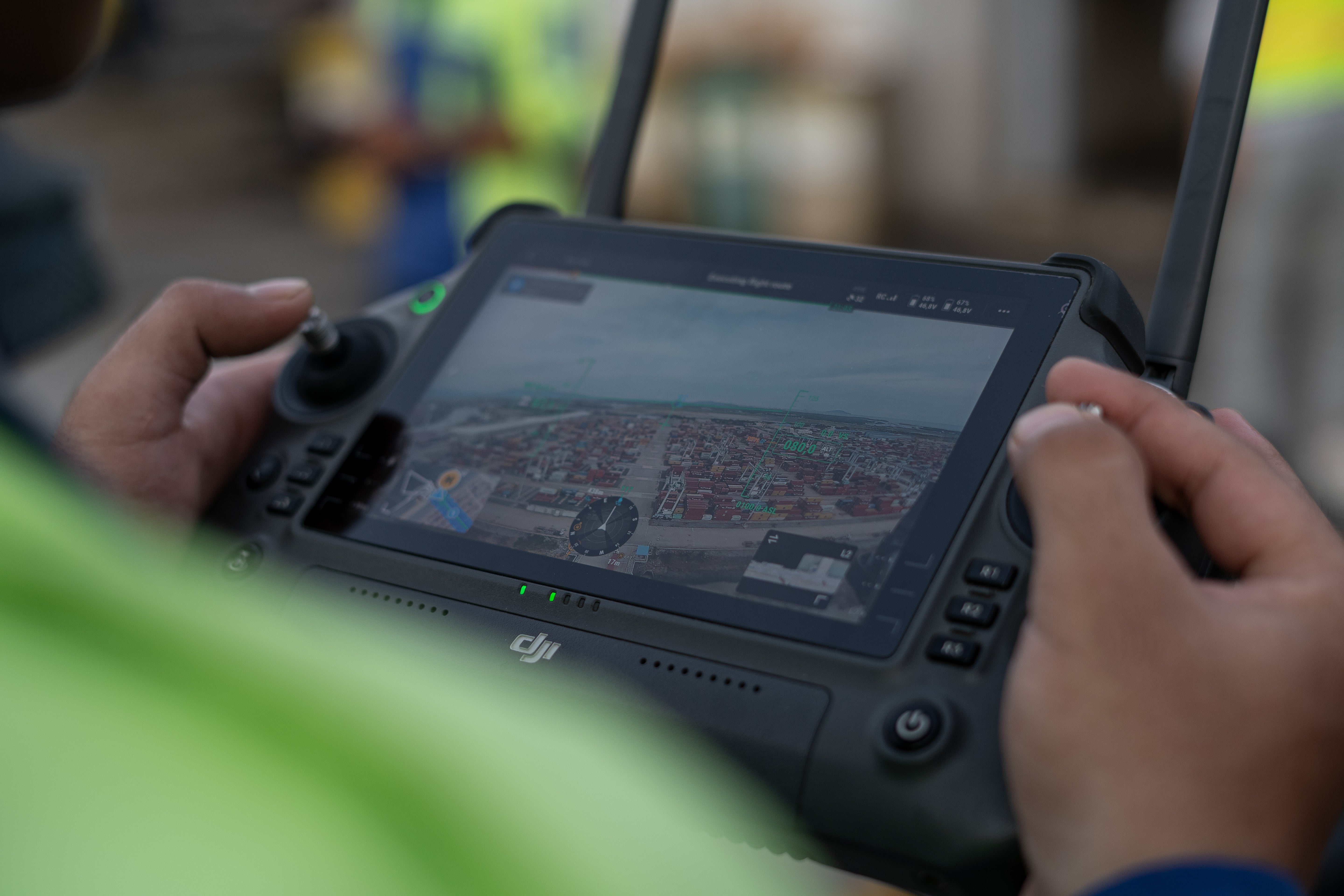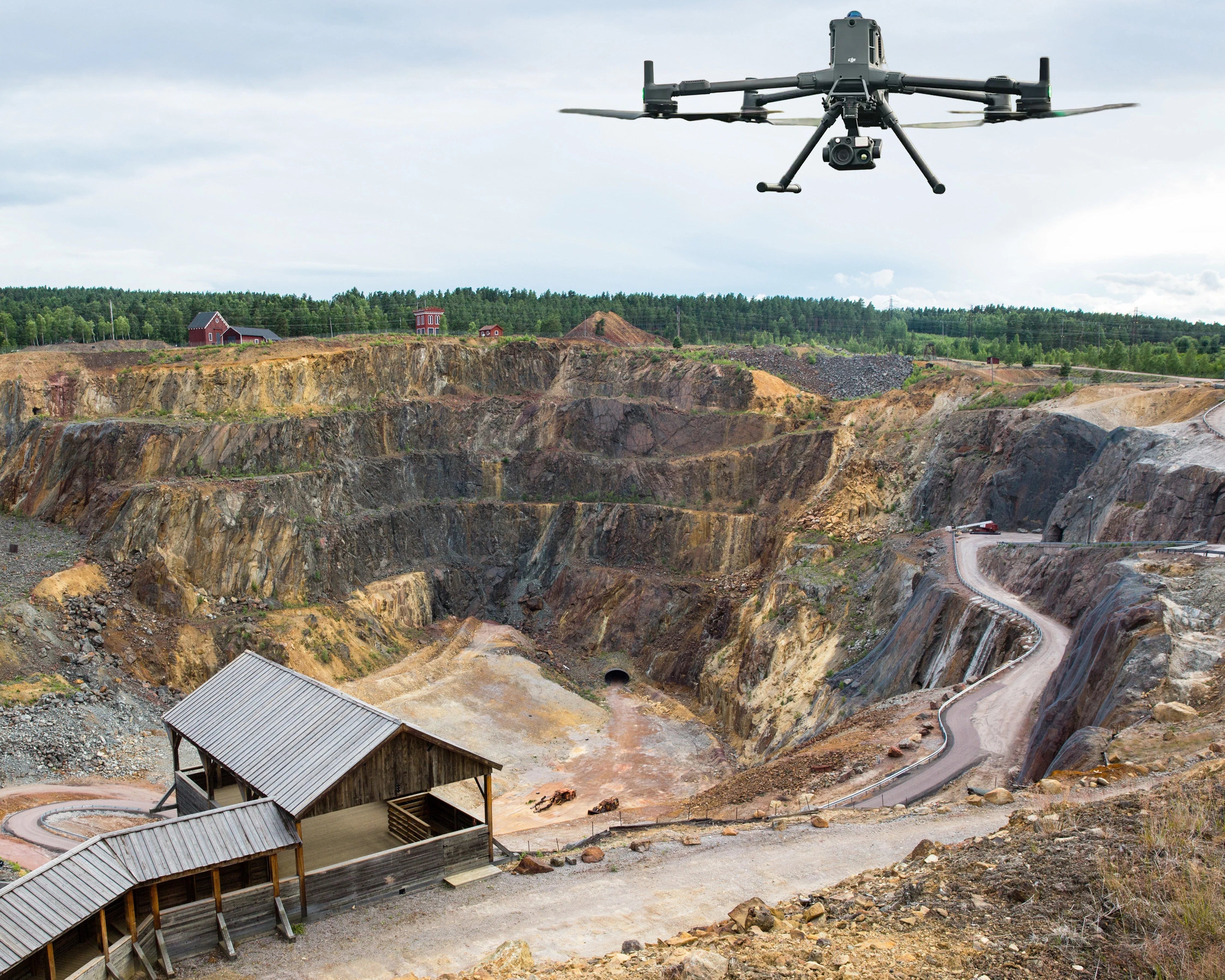 The drone is equipped with AI or automated inspection software, engage those features to analyze the terrain while the drone is in flight. This can help identify landform changes in environment, stockpile footprints, and construction progress.